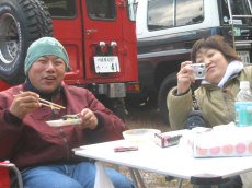 バイクで参加のiwataさん 寒い・・エンジンカイロで 手を温め中 |