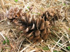 | ゲレンデに一本だけ 生い茂る松には 大量のマツボックリが・・ |
