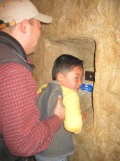 | 「ひらけ〜っ!ゴマ」と言うと 開く展示室の扉。 オッサンのダミ声では開かず 子供に使命を託す・・ 無事開き中へ・・ 後から来たカップルが開かずに 立ち往生してた |