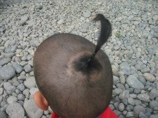 奇抜なヘアースタイルの 謙ちゃん次男 おでこに”中”の文字は 残念ながら無いが・・ |