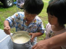 | チビたちも早起きですな・・ さっそく朝食の 仕込みのお手伝い |