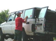 | リアには・・東北ランクル乗りの やまさんが作ってくれた TEAM虚弱や チキンハーツ、それに 我が泥魂のステッカーを。 コレでハマった時に 「あぁ・・虚弱だからね」と 周りの失笑を誘う お守り代わり。 |