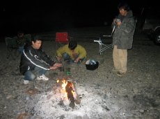 寒いときは、 とりあえず湯を沸かそう。 いつもコンロ持参は さすが隊長。 もちろん湯ONLY♪ 年の功で、おすそわけを待つ。 |