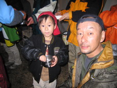 | ”なべ”に”鍋”・・ 小学生レベル以下の ギャグを展開する・・ キト弟@カツノブ氏と ギャグの餌食になった なべっち・・ 小雨で肌寒いが、ギャグも 凍りつく寒さ・・ |