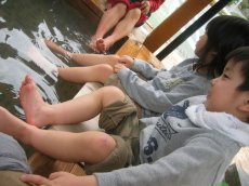 | 子供たちもチャプチャプ・・ ・・って、おい!息子。 おまえ足入れてねぇじゃん。 ・・・確かに・・・昨日より 熱め。しかもかなり。 例えて言うなら・・・・ |