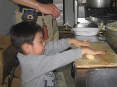 | コテージ内でも 子供たちが 棒巻きパン作り体験♪ 小指立ってますが 何か? |