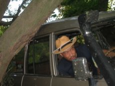 メリメリッ♪ 何度見ても ルーフアタック♪♪ 作戦どおりの道案内だ。 |