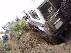 | どこの土地でも 英才教育はあるようで・・ 先に来ていたジムニー集団は どう見ても小学生くらいが ステアリングを握ってた。 (注:公道ではありません) |