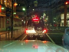 | 次なる目的地は、 関東の変態四駆乗りが 集うという某所。 相変らず、首都高は ロールする車には 厳しいカーブが多い・・ |