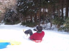 | そんな大人。 子供用ソリが ボブスレーなキチ氏。 弾丸のような速さで あっという間に視界から消えた。 殿、お戯れをぉ〜 |
