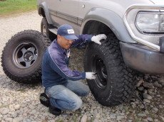 | にいや氏が今日のために、 ヘルニア腰痛を堪えて 積み込んだタイヤを見て ほくそ笑むあさる氏。 そう、無事に 嫁入りを果たすマッテレだ。 |