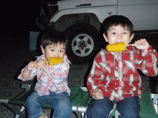 | いっぱい食べて 腹壊すなよ。 子連れのキャンプは 薬と保険証もお忘れなく。 あと、気合と根性も適度に。 忘れても良いのは 日々の喧騒のみ。 |