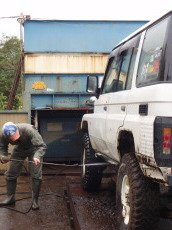 帰り道、泥を落とさない程度の 洗車は、大人のマナー。 極度の洗車は無駄な抵抗 控えめに。順番待ちの同志に 譲り合う心が美徳です。 あ、ボキの車は来たとき以上に 綺麗にするなってのは無理でつ。 高圧で塗装がハゲるほど 元がコ汚いんで。 |