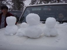 | 嫁も、日々の生活の 疲れを忘れ・・ 雪だるま作りにいそしむ。 で、そのだるまを 旦那に投げつけて ストレス発散するのだろう・・ |