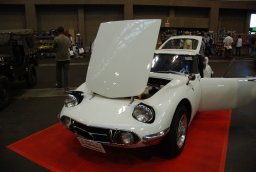 | ヒストリックカーのブーズでは トヨタ2000GTも鎮座。 ヤマハ発動機からのアプローチで 共同開発なのは周知のところ。 当時238万円。 これはカローラが6台買えるほど 高価なプライス。 |