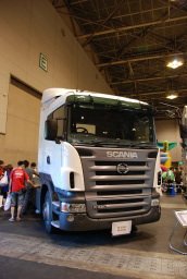 トラック協会主催なので トラックも無いと格好付かないが 会場の都合上か大型はヘッドのみ。 最近は国産でも外車風。 何CC?って質問してた客に 13CCですって トンチンカン回答をしてた 営業マン?が笑。そりゃLだろ。 |