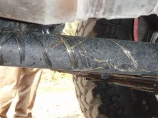 | ベースキャンプに戻ると 我が牛乳号のペラ・・ バニーガールの網タイツみたく 模様入りに・・ 一部の足フェチな人々には まぁ良くある事かもね・・ |