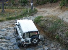 年賀状用写真にと、 少しでもナイスなアングルに 車を傾ける為、張り切って 牽引フックにヒット。 後日、モゲてるの判明。 やはり純正フックはショボい。 |
