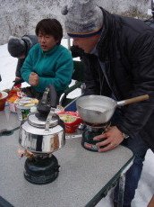 | 傍観者僧侶てつ氏が 熱視線を送る中 久々登場のキトちゃん号も 必死こいて鎖と格闘。 ケ<K(の)無いよう ご安全に! |