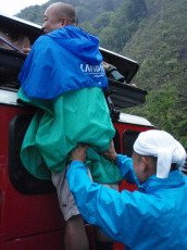 | 触りたくも無いケツを 渾身の力で持ち上げるT氏。 妙なテルテル坊主風 ポンチョキトウ 放屁5秒前・・の図。 パンチョ伊藤ではない。 |