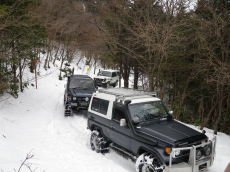 | 広場でハマっただけの 帰宅困難車を 無事にレスキューし 下山開始ぢゃ。 |