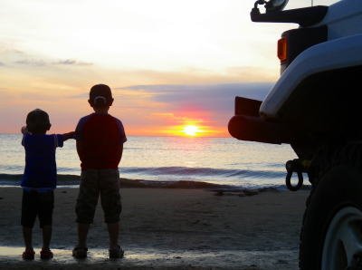 | 昔来た時は、長男が 今の次男の歳より小さい頃。 もちろん長男は記憶喪失(笑) 千里浜初体験の次男も 嬉しさ爆発、 ケツびしょ濡れ。 |