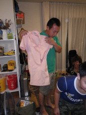 | 『ぜったいワタシのが似合うと 思うのよね〜着ないけどウフッ♪』 座り方が完全にオネェの 2.5次元男ペヤングヘアー魔H。 イヤよイヤよも好きのうち。 |