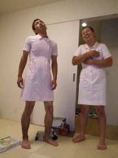 どうしてこうなったのか・・ 以前より制服好きの ファムサに贈る。 嫁が歯科衛生士時代に 来てたモノホンの ナース服を引っ張り出し・・ |
